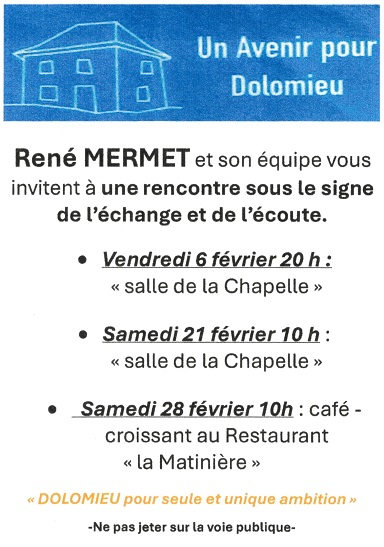 31/01/2026  René Mermet et son équipe vous invite à un rencontre sous le signe de l’échange et de l’écoute.